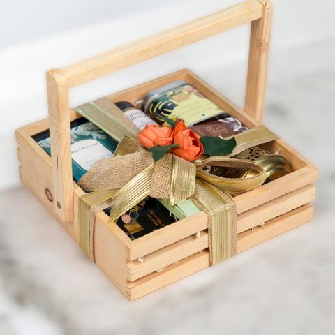 Panier cadeau en bois personnalisable avec poignée Caisse d'emballage rustique polie pour cadeaux de vacances ou d'anniversaire