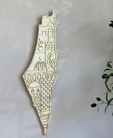 Carrelage de carte de Palestine en bois écologique fait à la main Décoration murale gravée au laser Technique peinte