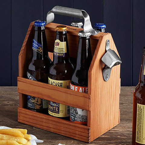 Personalizado Caddy De Cerveja De Madeira 6-Pack Suporte De Cerveja com Abridor De Garrafas Personalizado Rustic Beer Tote Gift